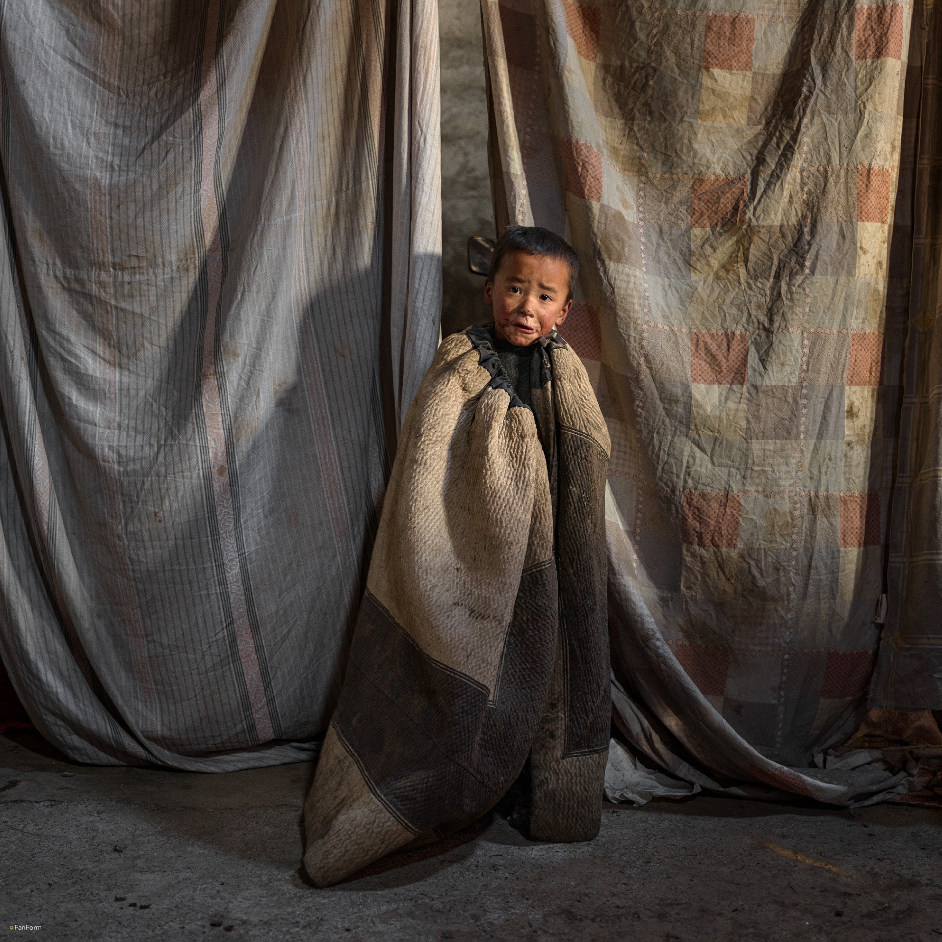 本组作品呈现的是中国大凉山腹地彝族聚居区彝族人的肖像。中国的凉山地区曾是彝族奴隶制社会的核心区域,历经千年,直至1956年民主改革,当地彝族的社会形态直接从奴隶制跨越至社会主义社会,实现了“一步跨千年”的历史性转变。这一跨越不仅改变了彝族的社会结构,更深刻影响了其文化、习俗与生产生活方式——传统服饰(如察尔瓦披毡、银饰)、宗教信仰(如毕摩文化)、生产方式(如刀耕火种、畜牧养殖)在现代化进程中面临的传承与变迁。