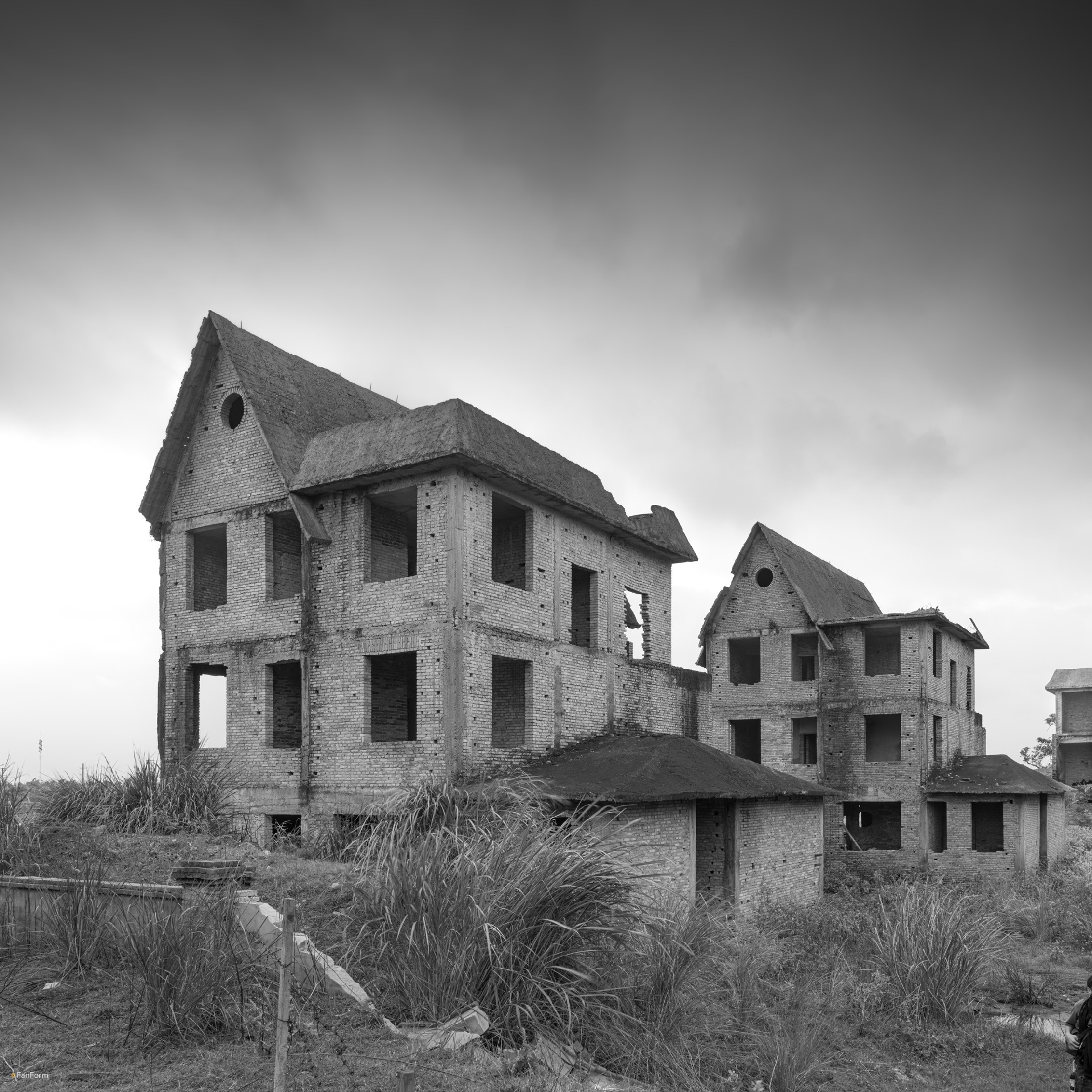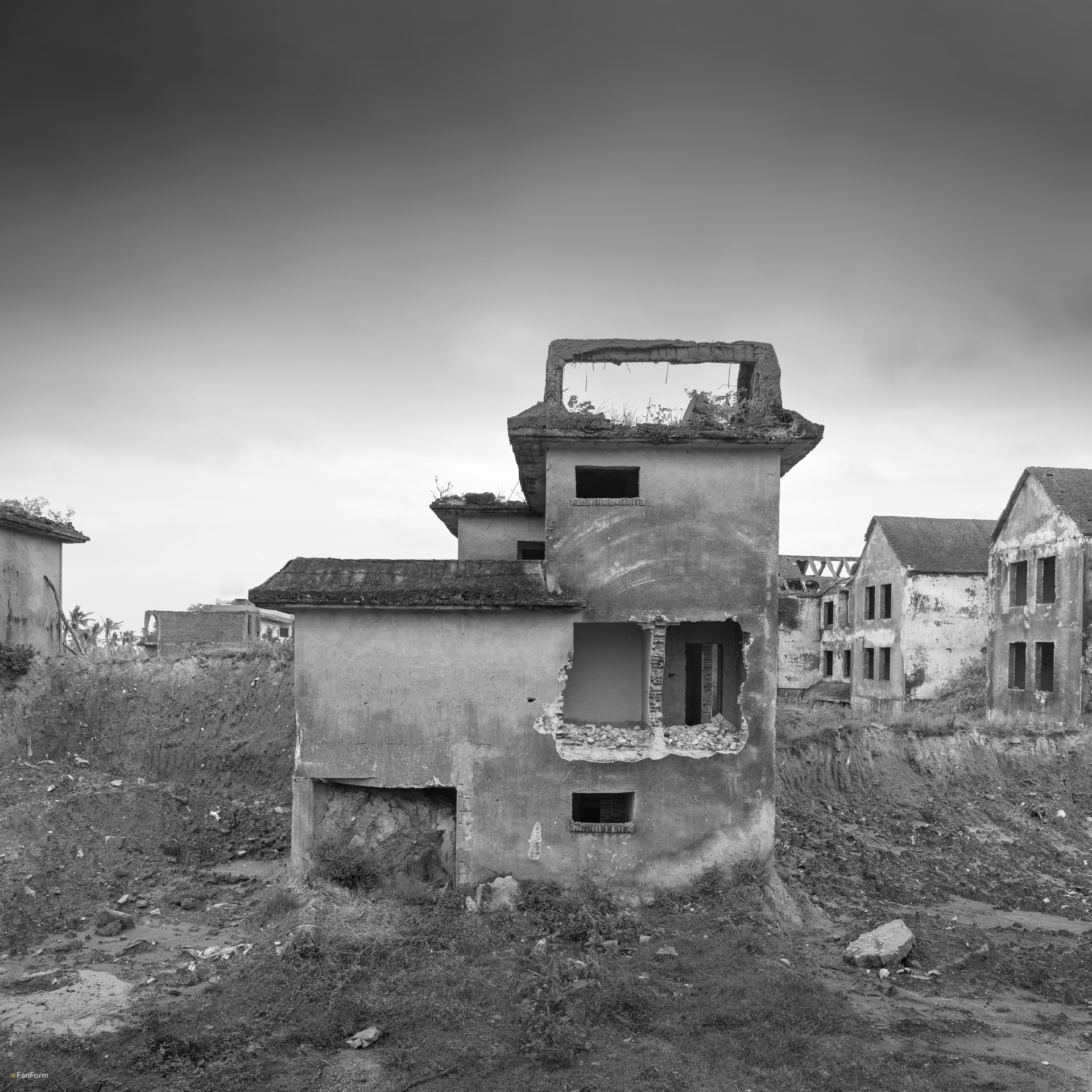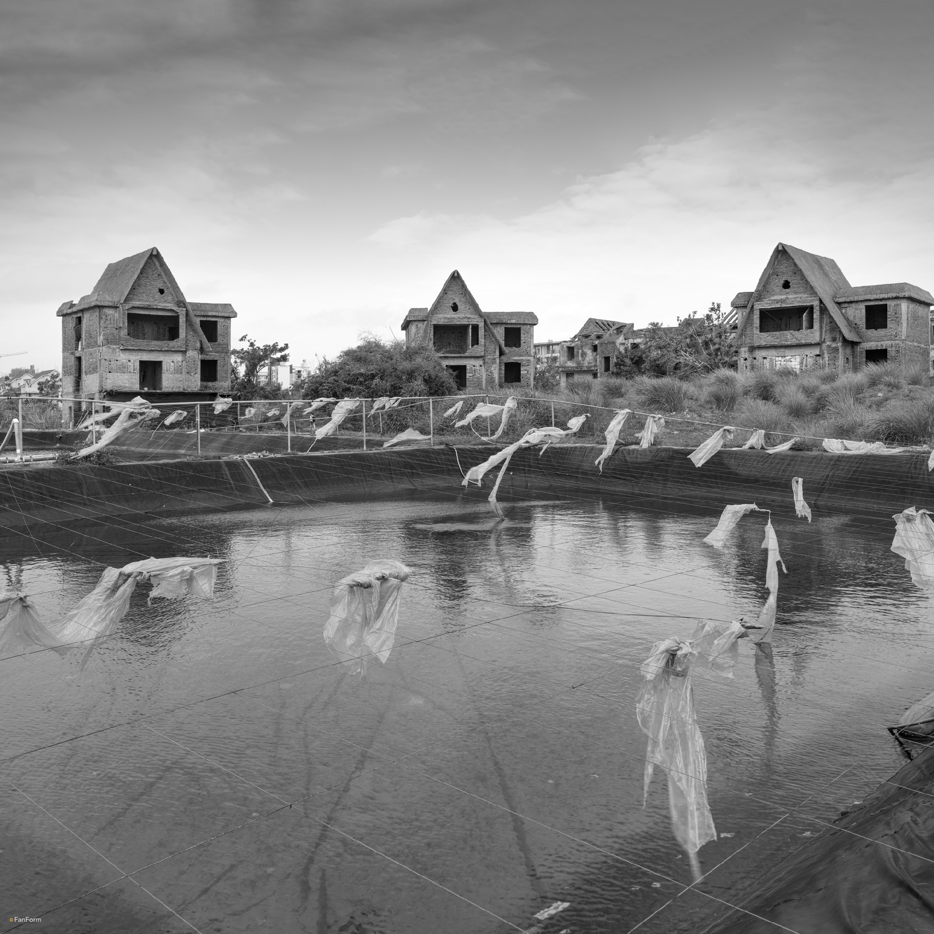 This series of photographs was shot in Haikou, Hainan Province, China. The unfinished villas photographed in Haikou were abandoned, and even became a place for surrounding villagers to raise pigs, chickens and other poultry.